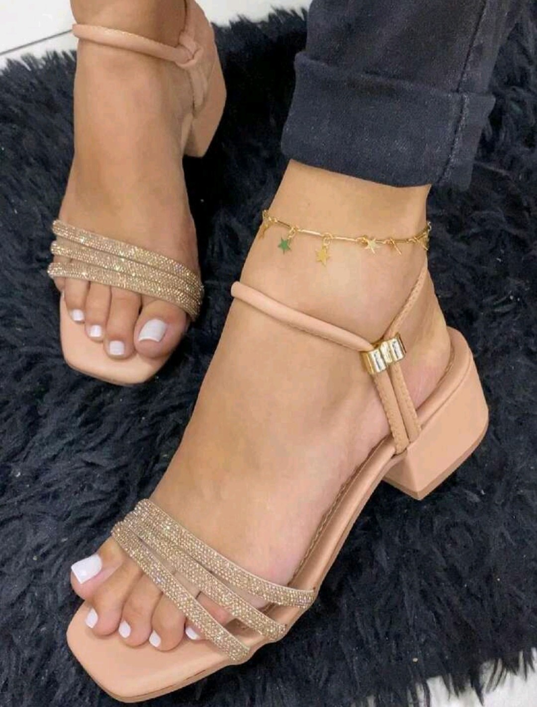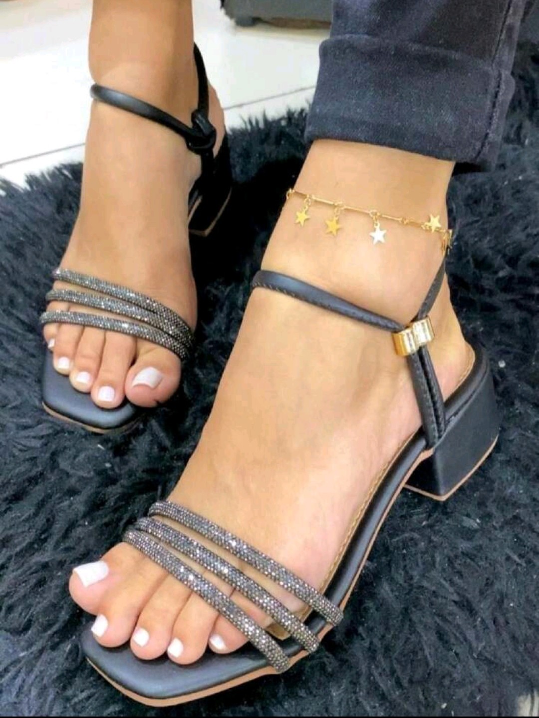 Imagine uma sandália de salto alto que une o melhor dos dois mundos: conforto e estilo sem concessões. Começando pelo design, ela apresenta um salto blocado de altura média (cerca de 7-8 cm), que proporciona estabilidade e distribui o peso de forma mais uniforme, aliviando a pressão na parte frontal do pé.